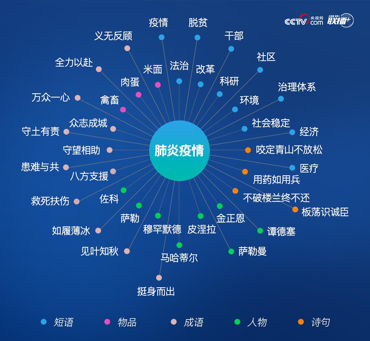 從關(guān)聯(lián)短語中我們可以看到,此次疫情不僅是一次公共衛(wèi)生事件,并涉及到治國理政的方方面面。疫情發(fā)生以來,習(xí)近平還曾主持召開中央全面依法治國委員會、中央網(wǎng)絡(luò)安全和信息化委員會、中央全面深化改革委員會、中央外事工作委員會等會議,從不同角度對做好疫情防控工作提出要求。