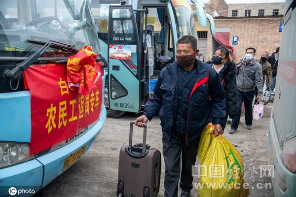 2月27日,陜西省渭南市白水縣人社局為外出務工人員提供了返崗復工包車護送服務,解決了全縣外出務工人員出行難的問題。(圖片來源:東方IC)