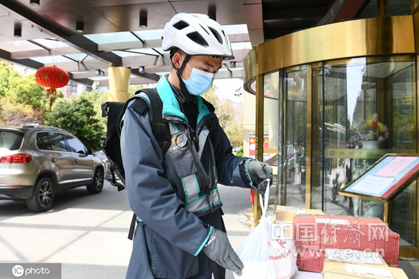 圖為外賣和快遞無接觸的分發點。(圖片來源:東方IC)