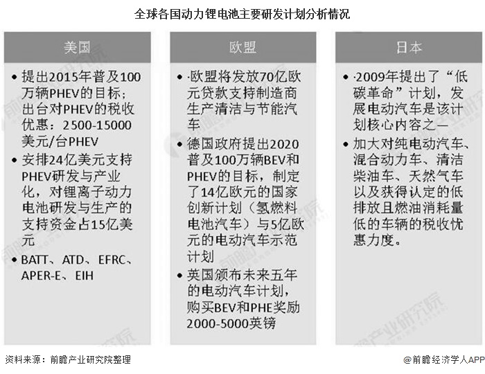 全球各國動力鋰電池主要研發計劃分析情況