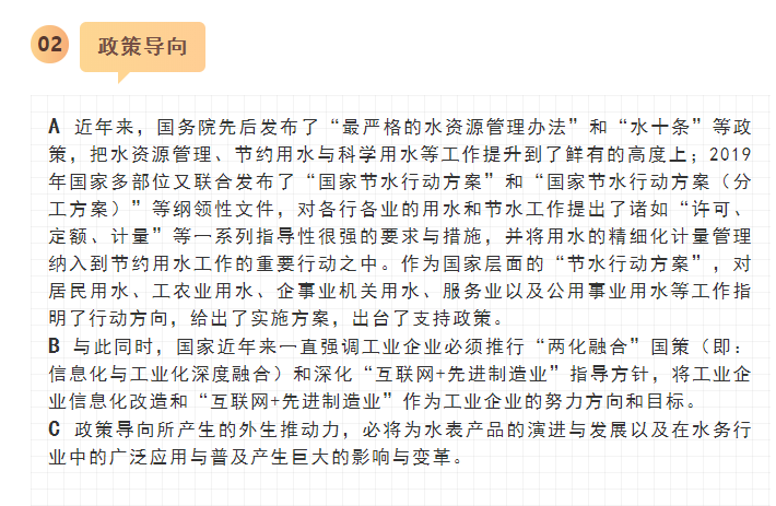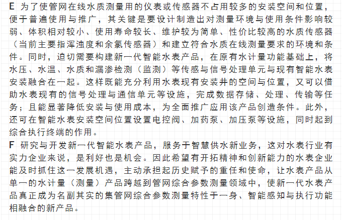 最近,寧水集團已正式啟動新一代智能水表(智能水表3.0)產品及供水新業務系統的商用化研發工作,在原先公司多個博士后課題研究基礎上進行商品化與工程化應用研究。可以預期,在不遠將來公司將為供水管網系統提供高性價比的水務綜合大數據,為管網現代化管理提供信息來源與決策依據(這方面詳細內容可參見附錄:“水表產品演進之路——從智能水表1.0/2.0產品向智能水表3.0產品邁進”一文)。至2020年初,公司在與浙江大學控制科學與工程學院合作基礎上,又先后與同濟大學環境科學與工程學院、寧波大學信息科學與工程學院等高校共同簽訂戰略合作協議,并聯合成立了“水務新技術研發實驗室”和“水務信息感知研發實驗室”,并將與寧波工業互聯網研究院等科研機構就水務新型傳感技術、供水關鍵核心業務等的解決方案展開合作研究。