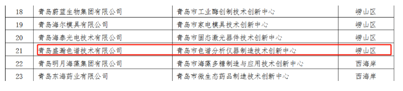 青島盛瀚成功轉建青島市色譜分析儀器制造技術創新中心