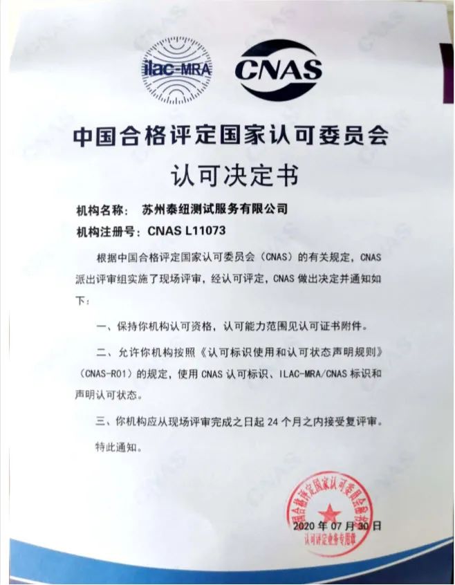 泰紐測(cè)試將嚴(yán)格執(zhí)行CNAS實(shí)驗(yàn)室認(rèn)可的相關(guān)要求,更加規(guī)范和完善實(shí)驗(yàn)室體系建設(shè),促進(jìn)公司健康有序發(fā)展,以更優(yōu)的質(zhì)量、更高的標(biāo)準(zhǔn)為客戶提供科研服務(wù)。