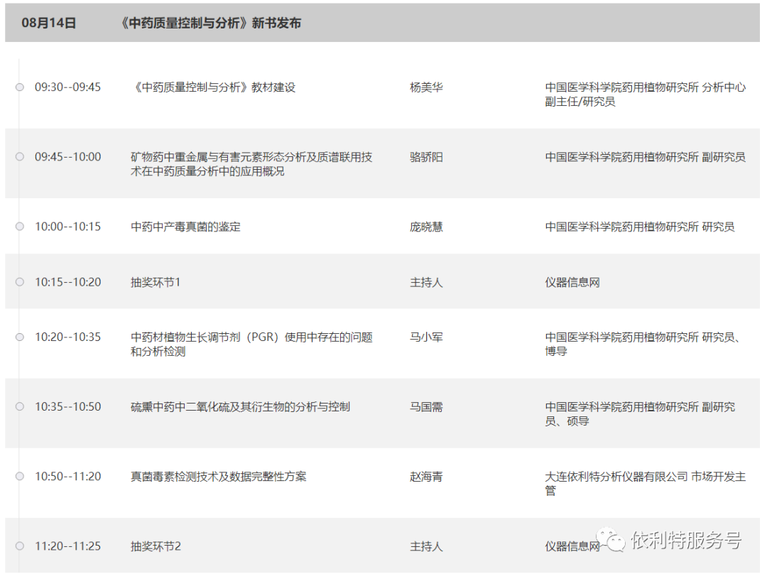 2、關(guān)注【依利特服務(wù)號】,獲得會后回放視頻、并有機會獲得《中藥質(zhì)量控制與分析》新書。