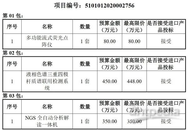 近日,四川省成都市成都大學(xué)附屬醫(yī)院發(fā)布一則招標(biāo)公告,欲購買多功能流式熒光點陣儀、液相色譜三重四極桿質(zhì)譜聯(lián)用檢測系統(tǒng)和NGS全自動分析解讀一體機儀器。以下為采購詳情:
