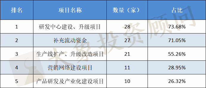 2015-2020 年期間新上市的38家企業(yè)的 IPO 募投項目主要有以下幾個方面: