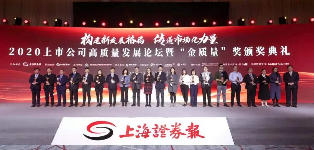 2020年12月23日,由上海證券報主辦的“2020年上市公司高質量發(fā)展論壇”暨“金質量”獎頒獎典禮在上海浦東隆重舉行。本次論壇以“構建新發(fā)展格局 傳遞市場化力量”為主題,匯聚了435家上市公司高管,這些公司合計市值近18萬億元。來自監(jiān)管層多位領導及上市公司掌門人作了精彩的演講。