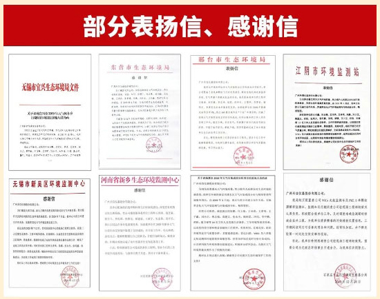 除廣州外,2020年禾信儀器為全國8個省份近30個城市提供空氣質量達標綜合服務項目,從南海之濱到燕山之北、從秀麗江南到關中平原,根據各個城市面臨的不同的環境空氣質量壓力和達標規劃,定制具有針對性的“測管評"聯動服務,助力藍天保衛戰。年末收官、捷報頻傳,一份份亮眼的成績單、一封封感謝信表揚信讓我們備受鼓舞。