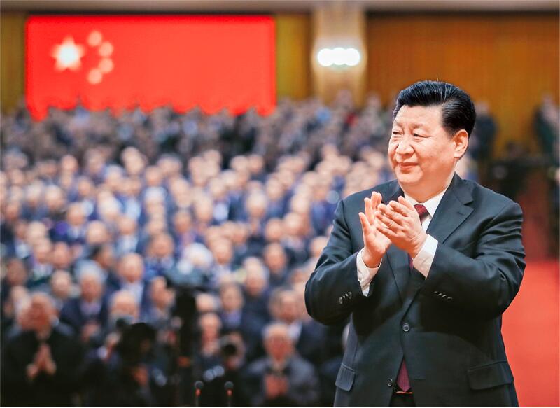 2018年12月18日,慶祝改革開放40周年大會在北京人民大會堂隆重舉行。中共中央總書記、國家主席、中央軍委主席習近平在大會上發表重要講話。這是習近平鼓掌向受表彰人員表示祝賀。 新華社記者 謝環馳/攝