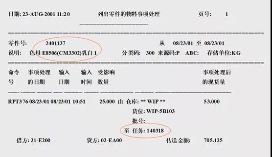 解釋圖3,零件號:2401137是原材料,從在制品貨位:WIP-5B103,投入至任務:140318。即物料2401137原材料,加工成了產品140318。定單的生產日期、生產時間、成本清清楚楚。顯然有了這些視圖,憑證單已經不重要了。所以紙質的憑證單,倉庫記賬職位都可以取消了。