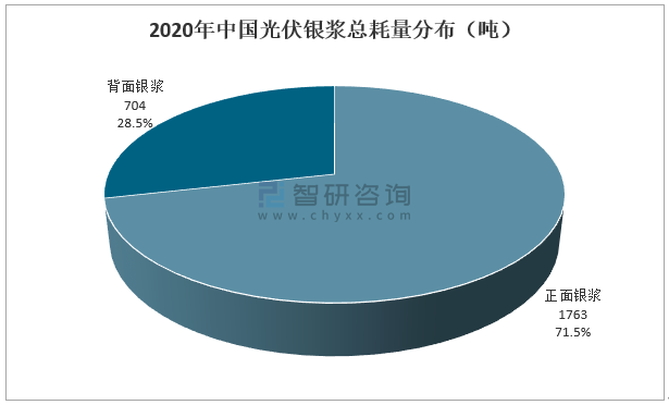 其中正面銀漿消耗量為1763噸,占中國光伏銀漿總耗量的71.5%;背面銀漿消耗量為704噸,占中國光伏銀漿總耗量的28.5%。