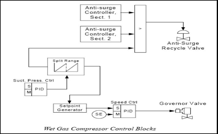 當主風機的實際工作流量低于某一數值時,控制系統根據測量的參數及預先編制的專用的喘振控制應用程序進行判斷、計算、輸出,打開防喘振放空閥,增加風機的流量,防止喘振的發生。