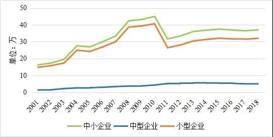 圖1  2001—2018年我國中小企業數量變化