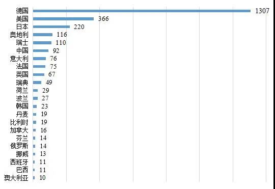 圖3  各國隱形冠軍數量