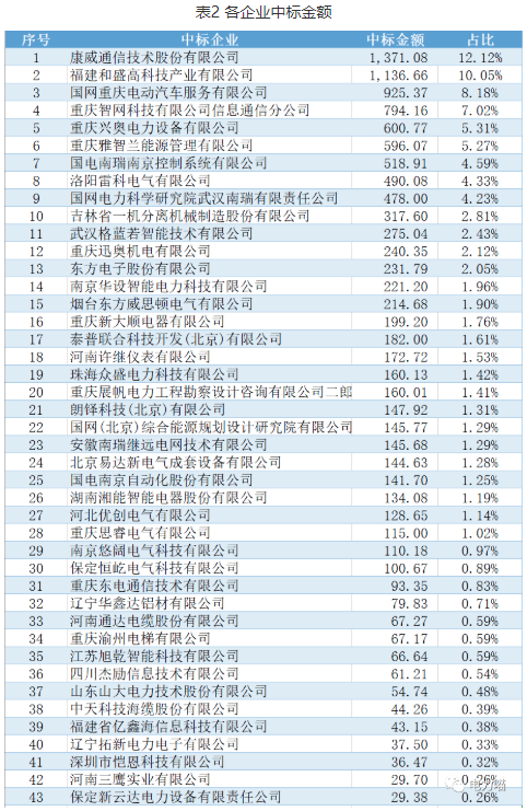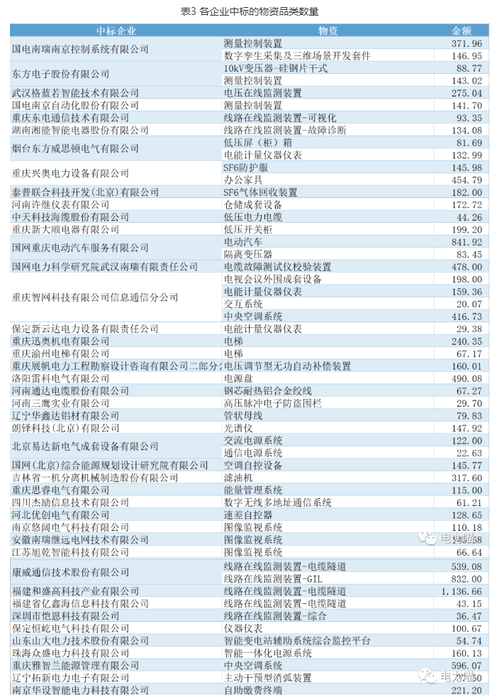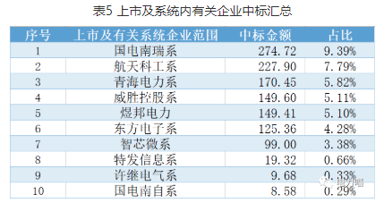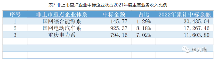 本項目中標的3個非上市重點企業體系,國網電動汽車系中標金額最高。