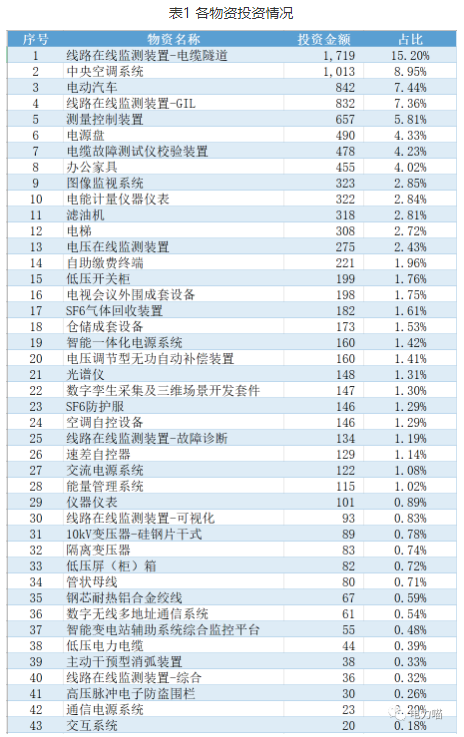 國網重慶2022年第三次物資招標項目共招標了46種物資,從各物資投資力度角度,結合中標金額,廠站終端物資投資力度最大,合計1,719萬元,占比約15.2%;中央空調系統物資投資力度其次,共1,013萬元,約占本次招標項目9%