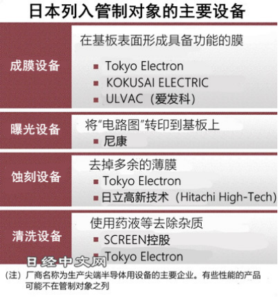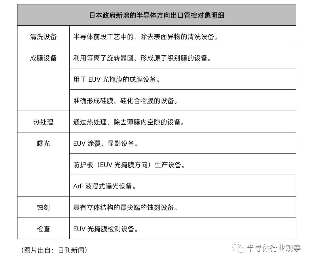 日本經(jīng)濟(jì)產(chǎn)業(yè)省發(fā)布的清單涉及清洗、成膜、熱處理、曝光、蝕刻、檢查等23個種類,包括極紫外(EUV)相關(guān)產(chǎn)品的制造設(shè)備和三維堆疊存儲器的蝕刻設(shè)備等。