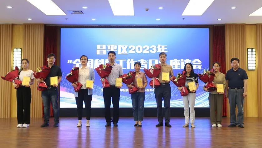 昌平區政協副主席、科協主席李雪紅、昌平區委宣傳部常務副部長李文慧、昌平區科協黨組書記李成旺為科技工作者代表頒發證書。