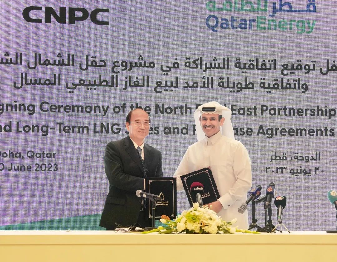 簽約儀式在卡塔爾能源公司總部舉行,中國石油集團董事長戴厚良,卡塔爾能源事務(wù)國務(wù)大臣、卡塔爾能源公司總裁兼首席執(zhí)行官卡阿比分別代表雙方簽署合作文件并致辭。