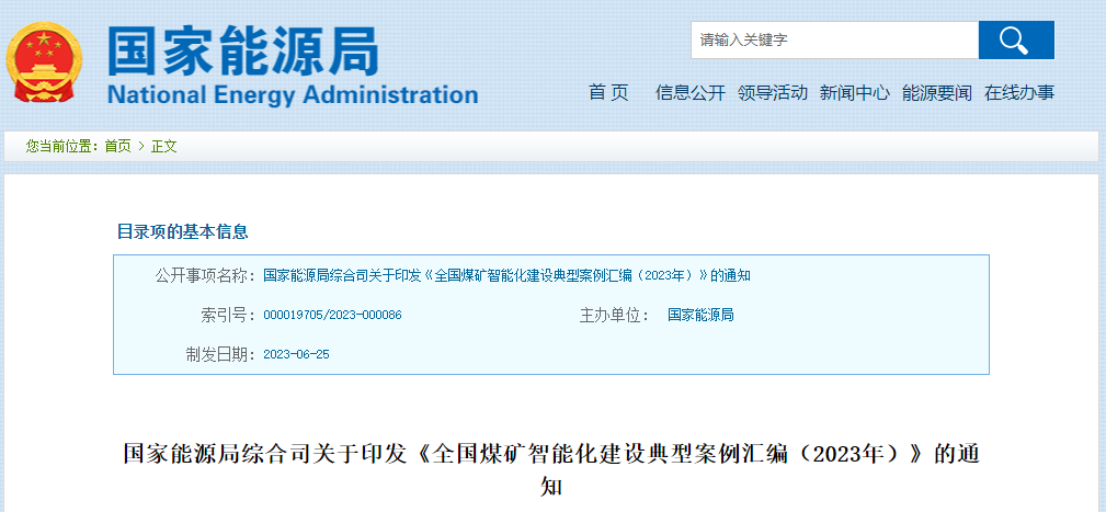 為全面貫徹黨的二十大精神,深入落實《關(guān)于加快煤礦智能化發(fā)展的指導意見》(發(fā)改能源〔2020〕283號),加快推動新一代信息技術(shù)與煤炭產(chǎn)業(yè)深度融合,我們梳理了智能化示范煤礦建設(shè)過程中的成功經(jīng)驗和典型做法,形成了《全國煤礦智能化建設(shè)典型案例匯編(2023年)》。現(xiàn)印發(fā)你們,請各地煤炭行業(yè)主管部門、有關(guān)中央企業(yè),按照全國煤礦智能化建設(shè)現(xiàn)場推進會工作部署,認真學習借鑒典型案例先進經(jīng)驗,因地制宜積極推廣煤礦智能化建設(shè)的成功做法,廣泛宣傳智能化建設(shè)成效,形成示范效應(yīng),推動煤礦智能化建設(shè)邁向更高水平。煤礦智能化建設(shè)過程中如有重大突破和重要進展,請及時反饋國家能源局(煤炭司)。