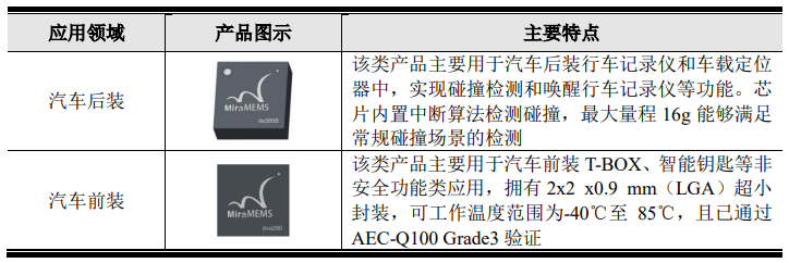 車載應(yīng)用類MEMS加速度計,主要應(yīng)用于T-BOX、智能鑰匙等汽車智能交互系統(tǒng):