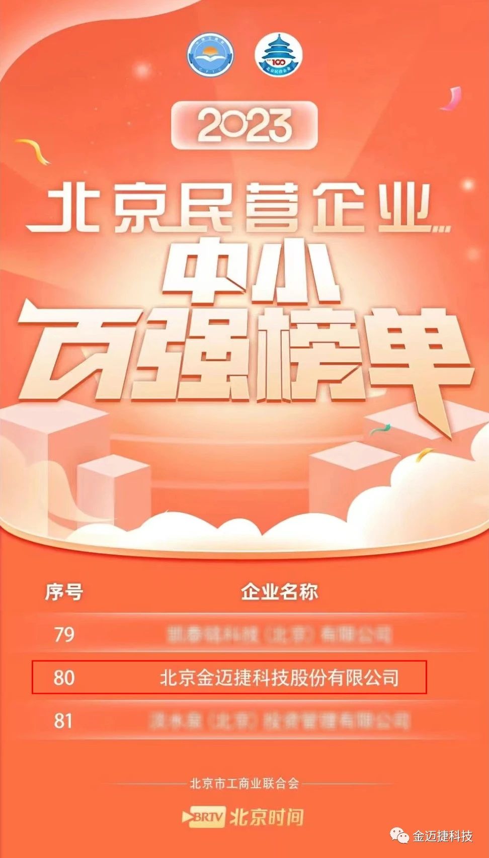 9月21日,北京市工商聯(lián)、北京市豐臺(tái)區(qū)人民政府聯(lián)合召開2023北京民營(yíng)企業(yè)百強(qiáng)發(fā)布會(huì),正式發(fā)布2023北京民營(yíng)企業(yè)百強(qiáng)“1+4”榜單。金邁捷科技再次榮登“北京民營(yíng)企業(yè)中小企業(yè)百強(qiáng)”榜單,這也是金邁捷科技連續(xù)2年上榜百強(qiáng)。
