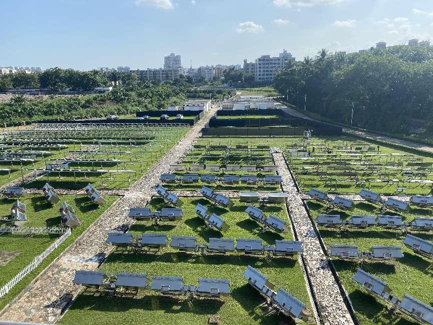 瓊海站占地48,000平方米、現有暴曬面積12,000平方米,根據需要可擴充至30,000平方米。建有戶外大氣暴露試驗區、汽車整車暴露試驗區、棚下暴露試驗區、樣品檢測室、太陽輻射記錄監控室、氣象監控室、大氣分析室、樣品處理室、樣品存放室、資料檔案室等。暴曬場安裝有可調角度暴露試驗架,擁有IP/DP箱、太陽跟蹤式IP/DP箱、標準黑箱、玻璃箱、太陽跟蹤聚光加速等自然環境試驗裝置。可執行的標準有GB、ISO、ASTM、GM、AATCC、SAE以及各種企業標準。