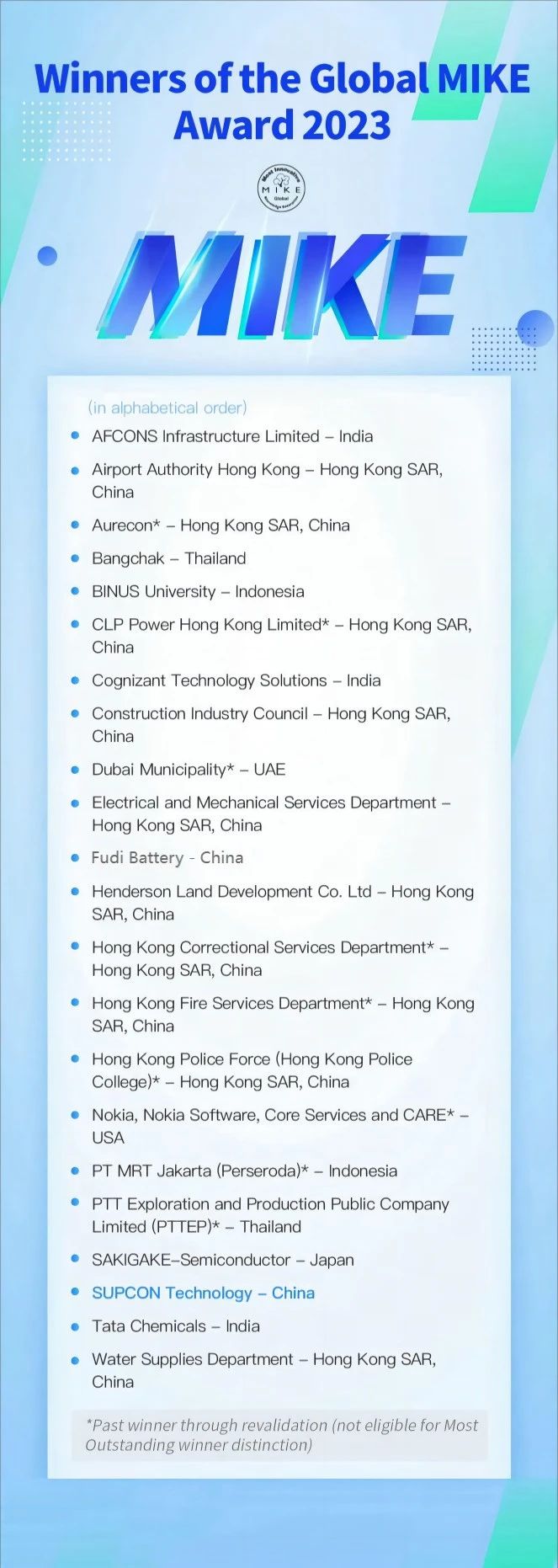 在2023年的全球MIKE大獎評選中,共有八個國家/地區(qū)參與,包括中國(內地)、中國香港、印度、印度尼西亞、日本、泰國、阿聯(lián)酋和美國。經(jīng)過嚴格的評選,共有22家組織脫穎而出,榮獲2023全球MIKE大獎。在獲獎的22家組織中,僅有2家來自中國內地,其中中控技術是其中之一。此外,Google、Amazon、Apple、Microsoft等國際知名企業(yè)也曾獲得該獎項。