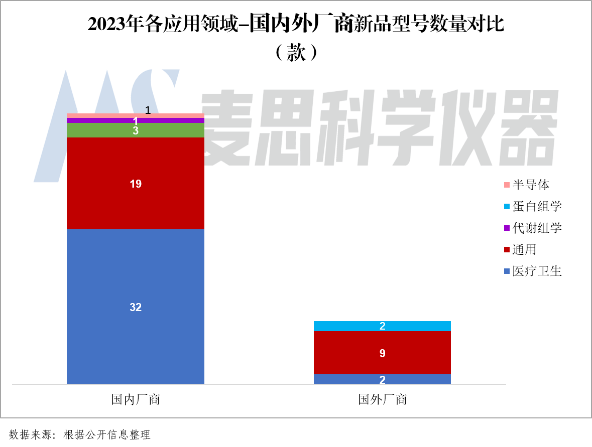 根據公開渠道發布的產品型號進行統計,2023年1-12月共有69款質譜新品上市,包括LC-Q-TOF、ICP-TOF、LC-Q-ET(Astral)、LC-TQ等,新品型號數量同比增長40.8%。
