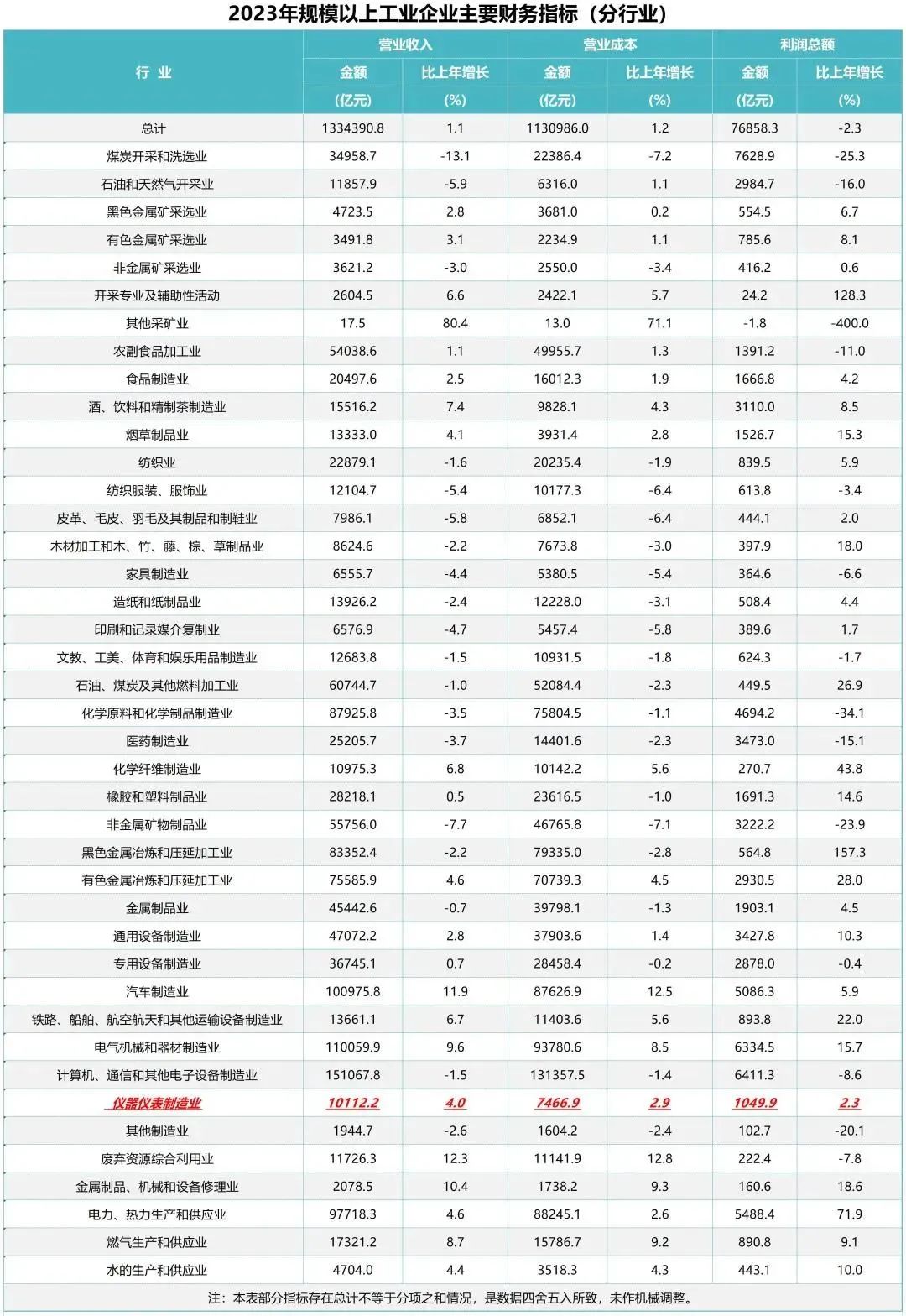 國家統計局:儀器儀表制造業的營業收入為10112.