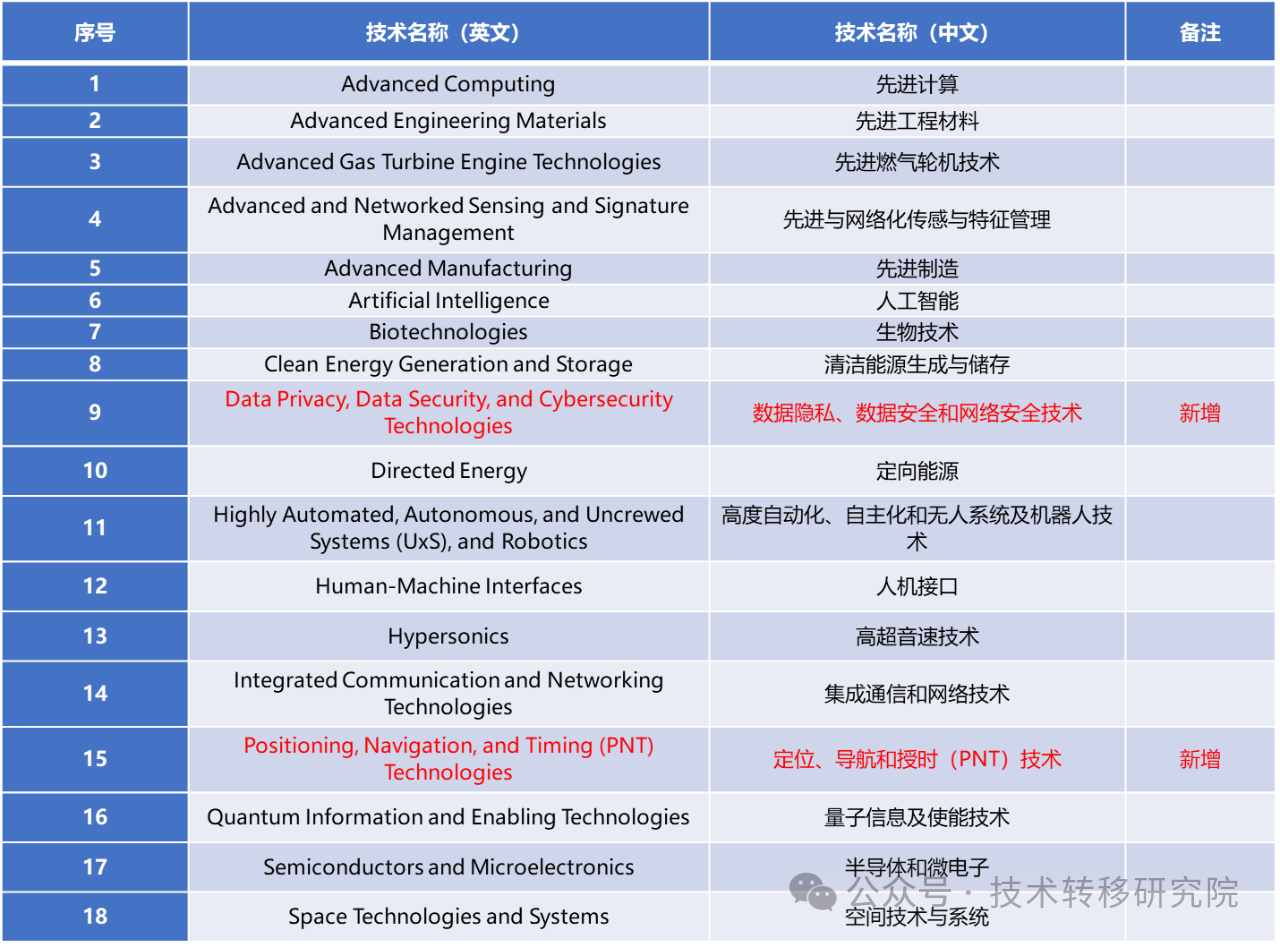 2024年最新版《關鍵和新興技術清單》