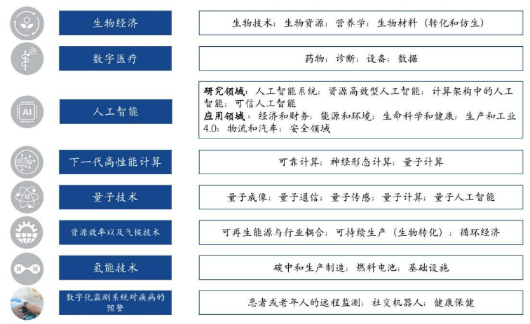 弗勞恩霍夫協(xié)會(huì)目前的研究領(lǐng)域主要有8項(xiàng),包括:生物經(jīng)濟(jì)、數(shù)字醫(yī)療、人工智能、下一代高性能計(jì)算、量子技術(shù)、資源效率以及氣候技術(shù)、氫能技術(shù)和數(shù)字化監(jiān)測(cè)系統(tǒng)對(duì)疾病的預(yù)警等。