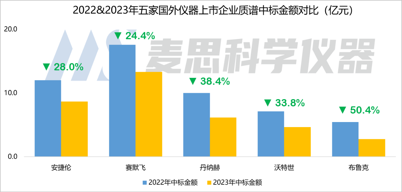 摘要:麥思研究院近期對賽默飛、丹納赫、安捷倫、沃特世和布魯克五家國外上市儀器企業的2023年度財務數據、中國市場中標情況以及近期企業動態進行了梳理。