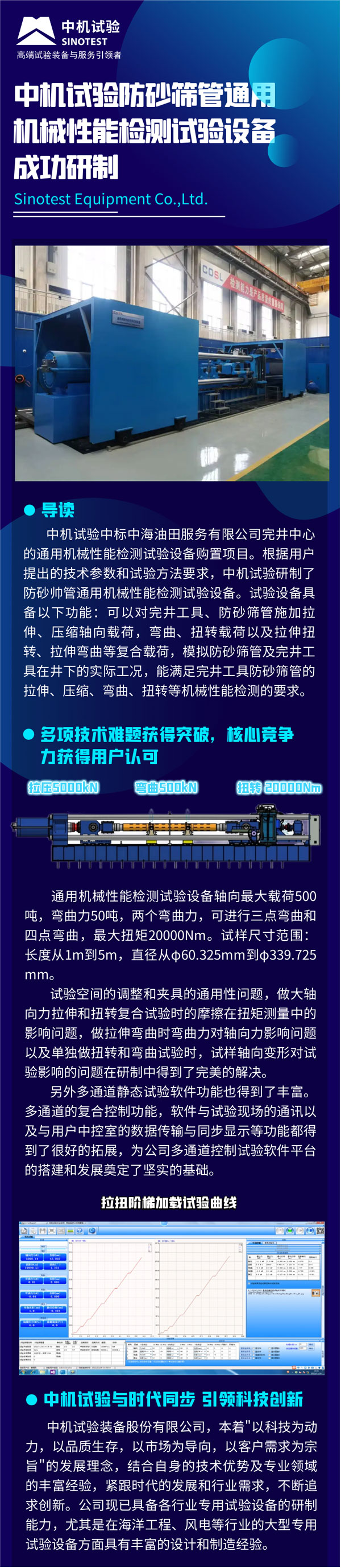 中機(jī)試驗(yàn)防砂篩管通用機(jī)械性能檢測(cè)試驗(yàn)設(shè)備成功研制