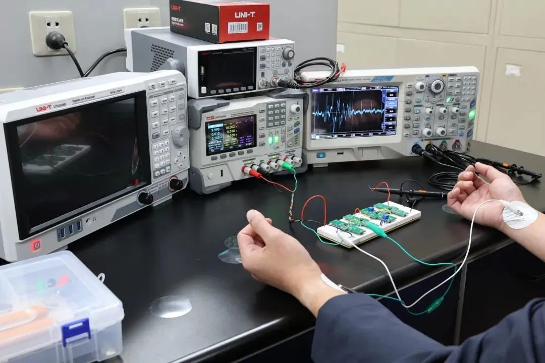 該電子電路實驗室匯集了優利德自主研發的MSO7000X系列混合信號示波器、UTS5000A系列信號分析儀、UTG9000T系列函數/任意波形發生器、UT8805N數字萬用表等8種類型的電子測試測量儀器。