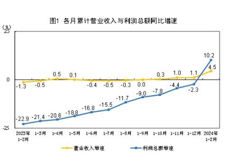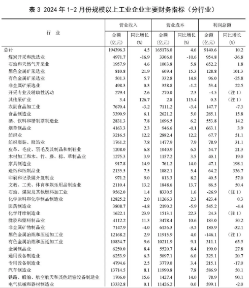 1—2月份,全國(guó)規(guī)模以上工業(yè)企業(yè)實(shí)現(xiàn)利潤(rùn)總額9140.6億元,同比增長(zhǎng)10.2%。