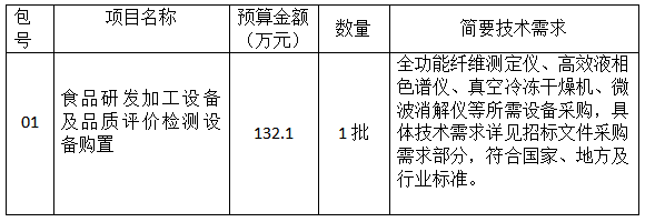 項目名稱:食品研發(fā)加工設(shè)備及品質(zhì)評價檢測設(shè)備購置