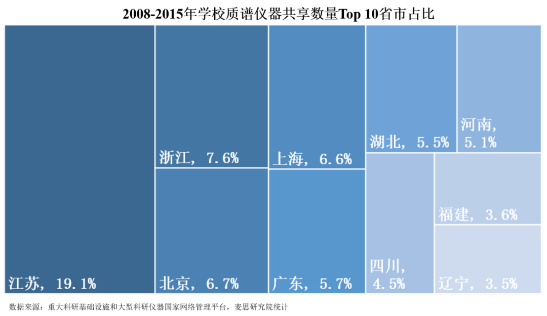 根據麥思研究院統計,2008-2015年共享平臺上約有5600臺質譜儀器開始啟用,其中約2000臺來自各類學校。