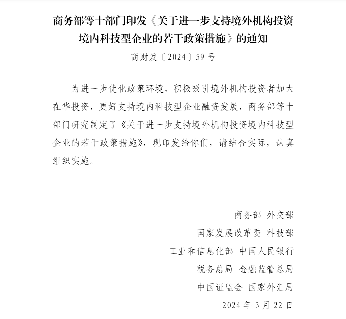 十部門聯合發文!支持境外機構投資境內科技型企業