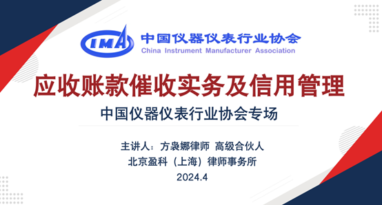 為進一步助力行業(yè)企業(yè)做好應(yīng)收賬款管理,降低經(jīng)營風(fēng)險,提升經(jīng)營效率和能力,4月26日上午,由中國儀器儀表行業(yè)協(xié)會、北京盈科(上海)律師事務(wù)所聯(lián)合舉辦的“2024年度儀器儀表行業(yè)首期培訓(xùn)班--應(yīng)收賬款催收實務(wù)和信用管理”圓滿舉辦。本次培訓(xùn)班為線上形式,吸引了儀器儀表行業(yè)企業(yè)的近260名學(xué)員參加,中國儀器儀表行業(yè)協(xié)會副秘書長鄭朝松出席此次培訓(xùn)活動并致辭。