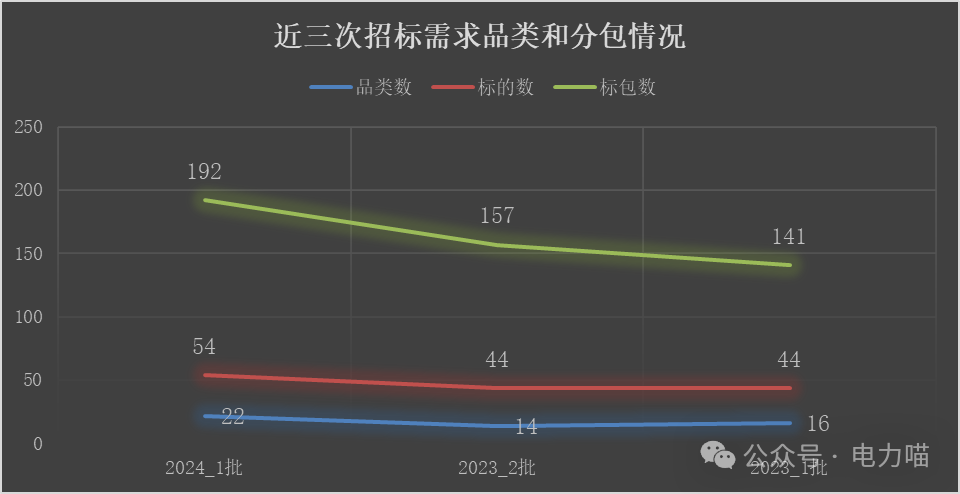本次招標(biāo)主要需求包含22個(gè)品類、54個(gè)標(biāo)的、192個(gè)標(biāo)包。本次招標(biāo)新增的物資品類主要是中壓開關(guān)自動化成套柜小類增加安全可控品類產(chǎn)品。