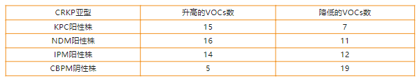 圖 8 加入IPM后各亞型CRKP產生的VOCs的變化(相對于CSKP)