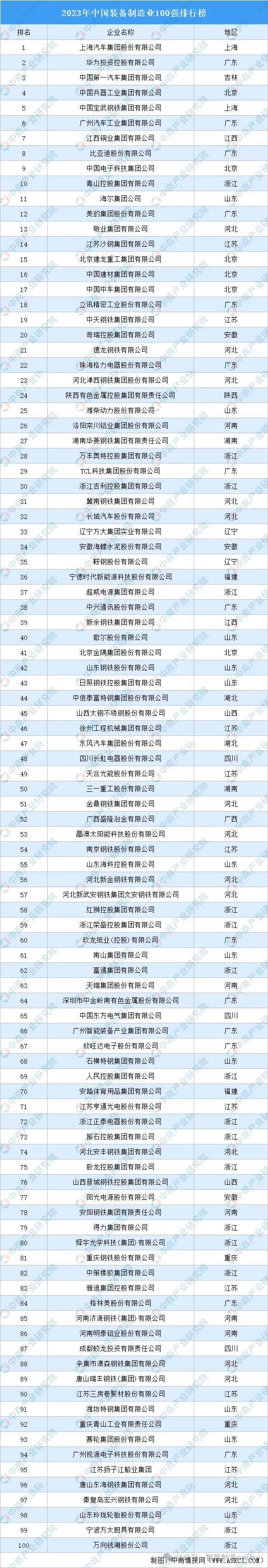中國裝備制造業100強排行榜
