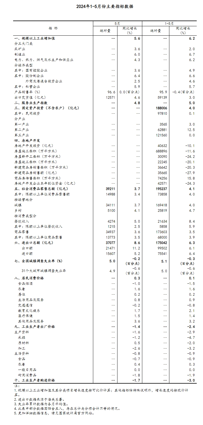 5月份,在以習近平同志為核心的黨中央堅強領導下,各地區各部門認真貫徹落實黨中央、國務院決策部署,堅持穩中求進工作總基調,完整、準確、全面貫徹新發展理念,加快構建新發展格局,扎實推動高質量發展,國民經濟延續回升向好態勢,生產穩定增長,需求持續恢復,就業物價總體穩定,國際收支平衡,轉型升級持續,運行總體平穩。