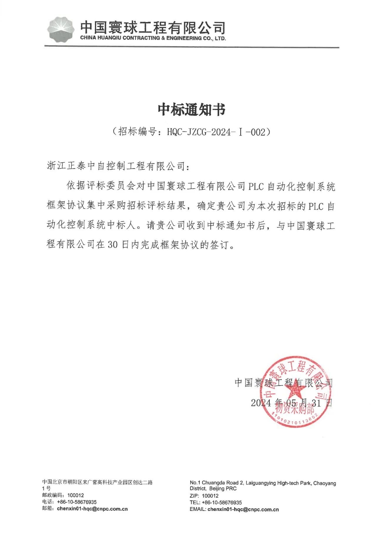 繼成功中標中石化2024年度DCS國產(chǎn)化系統(tǒng)框架協(xié)議,成為中國石化合格供應(yīng)商后,近日,浙江正泰中自控制工程有限公司又成功中標中石油下屬中國寰球工程有限公司2024-2025年度PLC自動化控制系統(tǒng)框架協(xié)議集中采購項目。