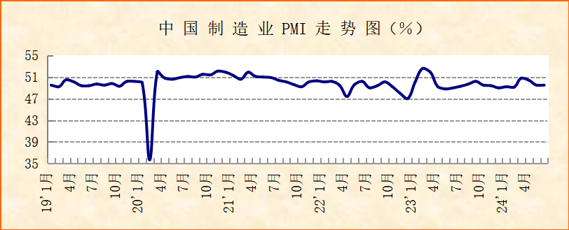 中國物流與采購聯(lián)合會(huì)、國家統(tǒng)計(jì)局服務(wù)業(yè)調(diào)查中心發(fā)布的2024年6月份中國制造業(yè)采購經(jīng)理指數(shù)(PMI)為49.5%,與上月持平。從分項(xiàng)指數(shù)變化來看,生產(chǎn)端穩(wěn)中有增,新動(dòng)能加快增長,微觀主體活力有所改善,原料成本壓力短期回落,經(jīng)濟(jì)運(yùn)行整體穩(wěn)定。但市場(chǎng)需求不足問題需進(jìn)一步重視。