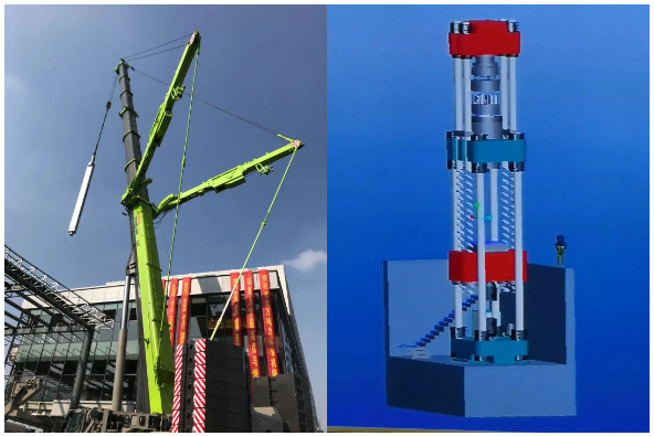驗算建模,力標準機主體設(shè)備一次吊裝成功!