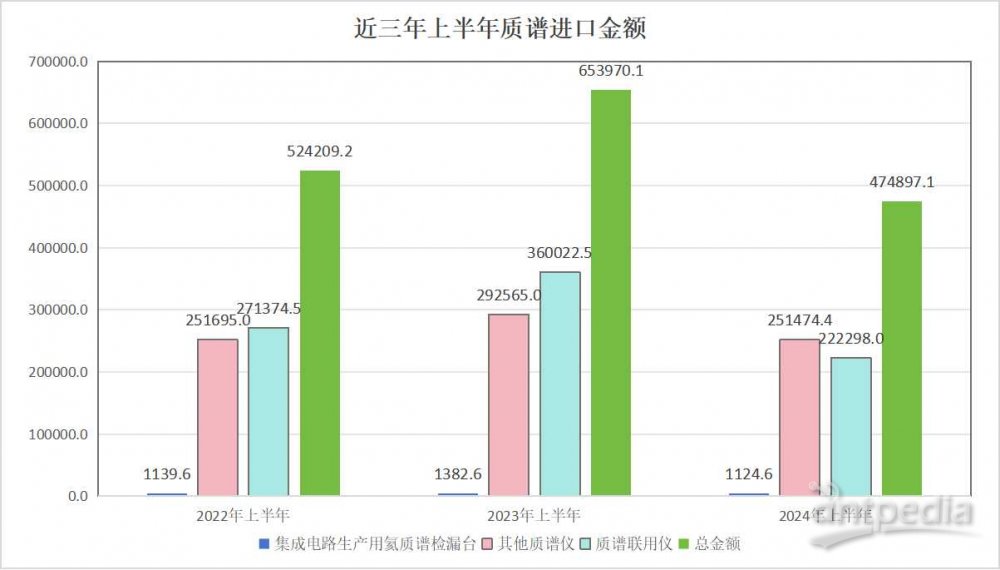 從2022年到2024年,質(zhì)譜儀的進(jìn)出口金額數(shù)據(jù)呈現(xiàn)以下趨勢(shì):