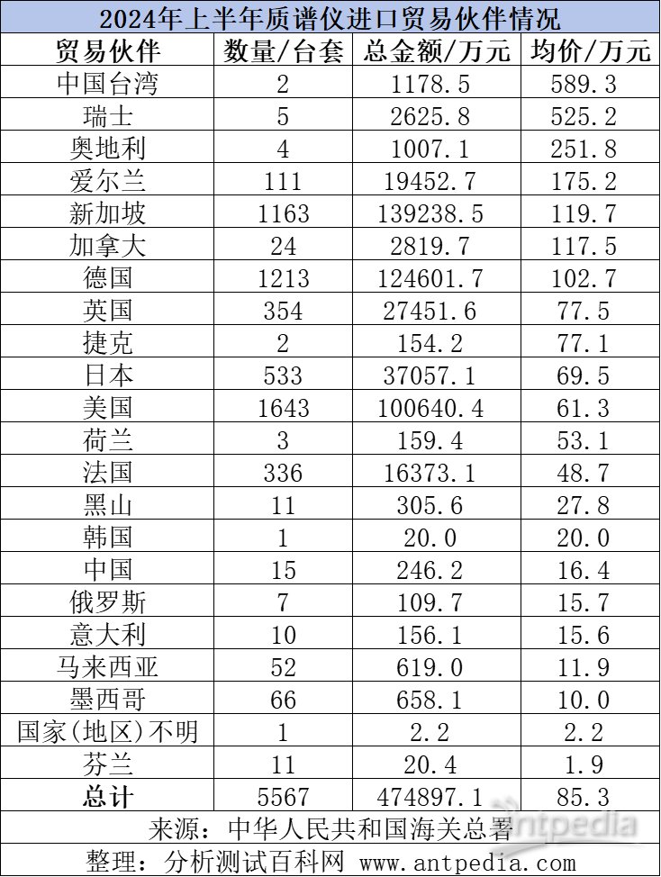 看2024年質(zhì)譜進(jìn)口貿(mào)易地區(qū)的進(jìn)口總金額