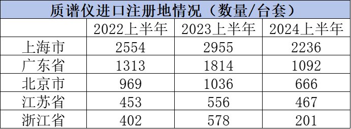 從2024年上半年質(zhì)譜出口金額來(lái)看,國(guó)內(nèi)TOP5的出口地區(qū)為上海市1.2億元,江蘇省3826.1萬(wàn)元,北京市3759.0萬(wàn)元,河南省2387.3萬(wàn)元,重慶市1999.7萬(wàn)元。